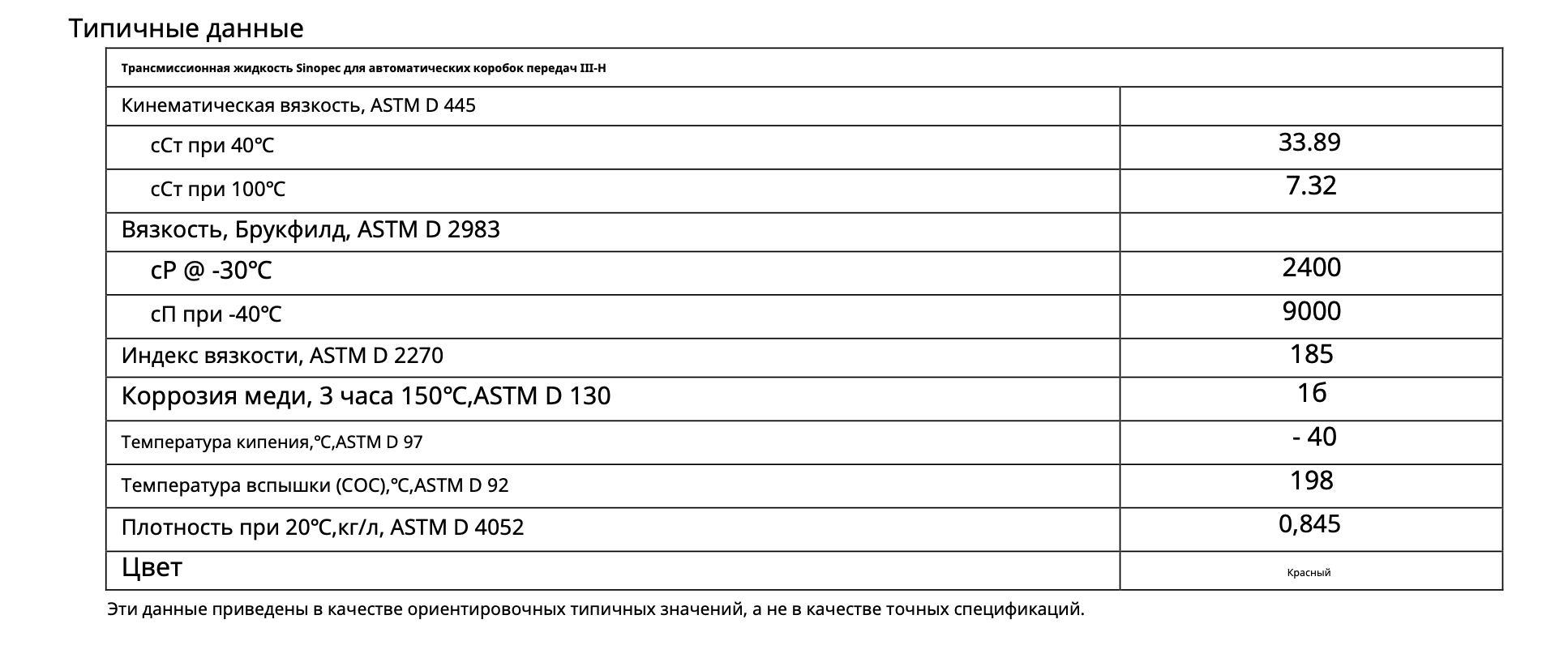 Трансмиссионная жидкость Sinopec Automatic Transmission Fluid III-H — это многофункциональная жидкость, созданная на основе синтетического базового масла с высоким индексом вязкости и подобранных присадок. Она подходит для использования в автоматических трансмиссиях многих автомобилей, а также в некоторых системах гидроусилителя руля и гидравлических системах.